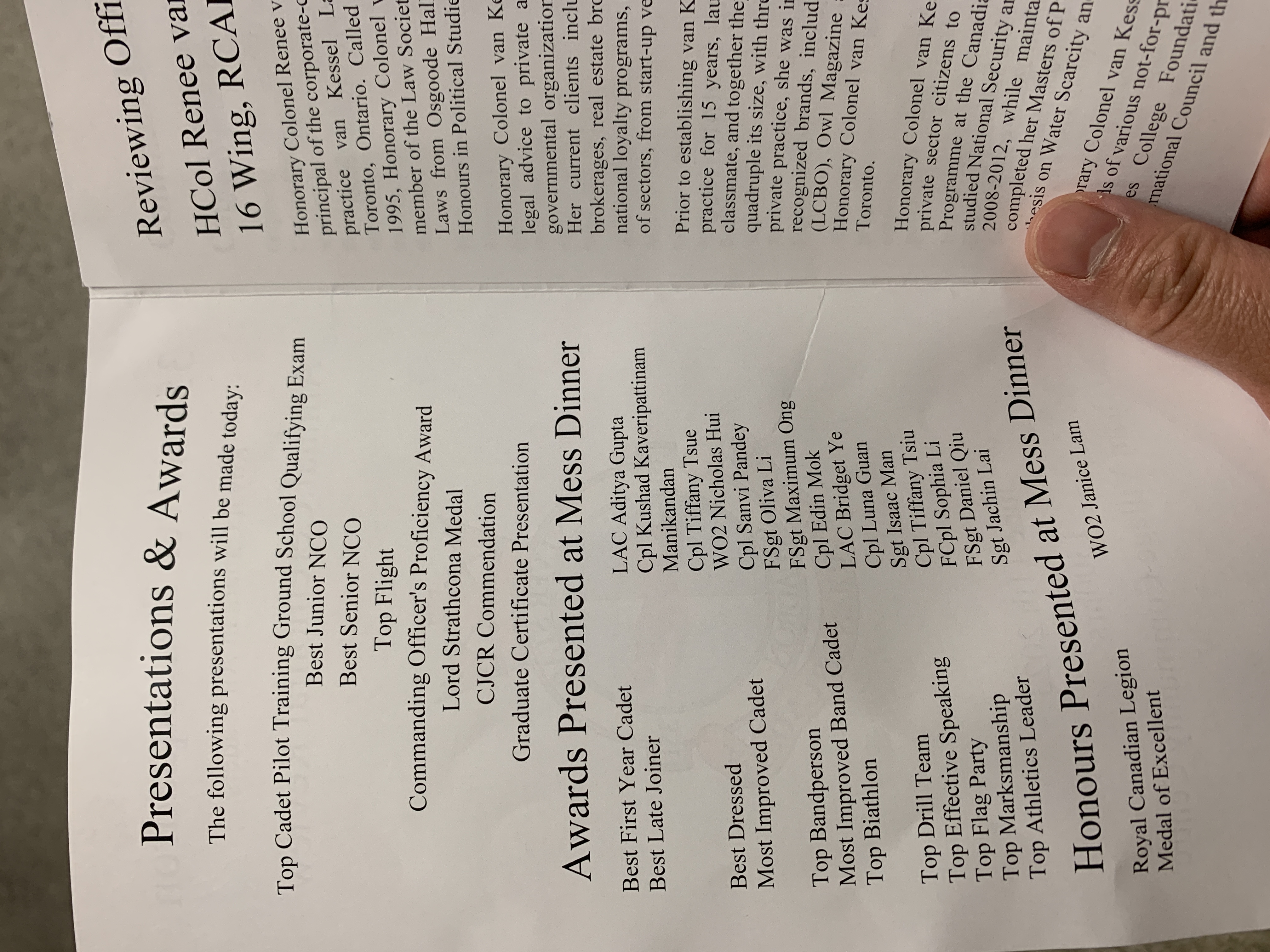In my current role as the Support Senior Warrant Officer, I oversee the supply (in charge of the cadet uniforms) and the weekly activities that are vital to the smooth functioning of our squadron. The 351 activities include marksmanship, biathlon, effective speaking, UPAR, flag party, drill team, sports night and band, in which each of these events have seperate weekly meetings. This position has allowed me to ensure that all supply and activity aspects are handled efficiently, supporting the needs of over 300 cadets.
